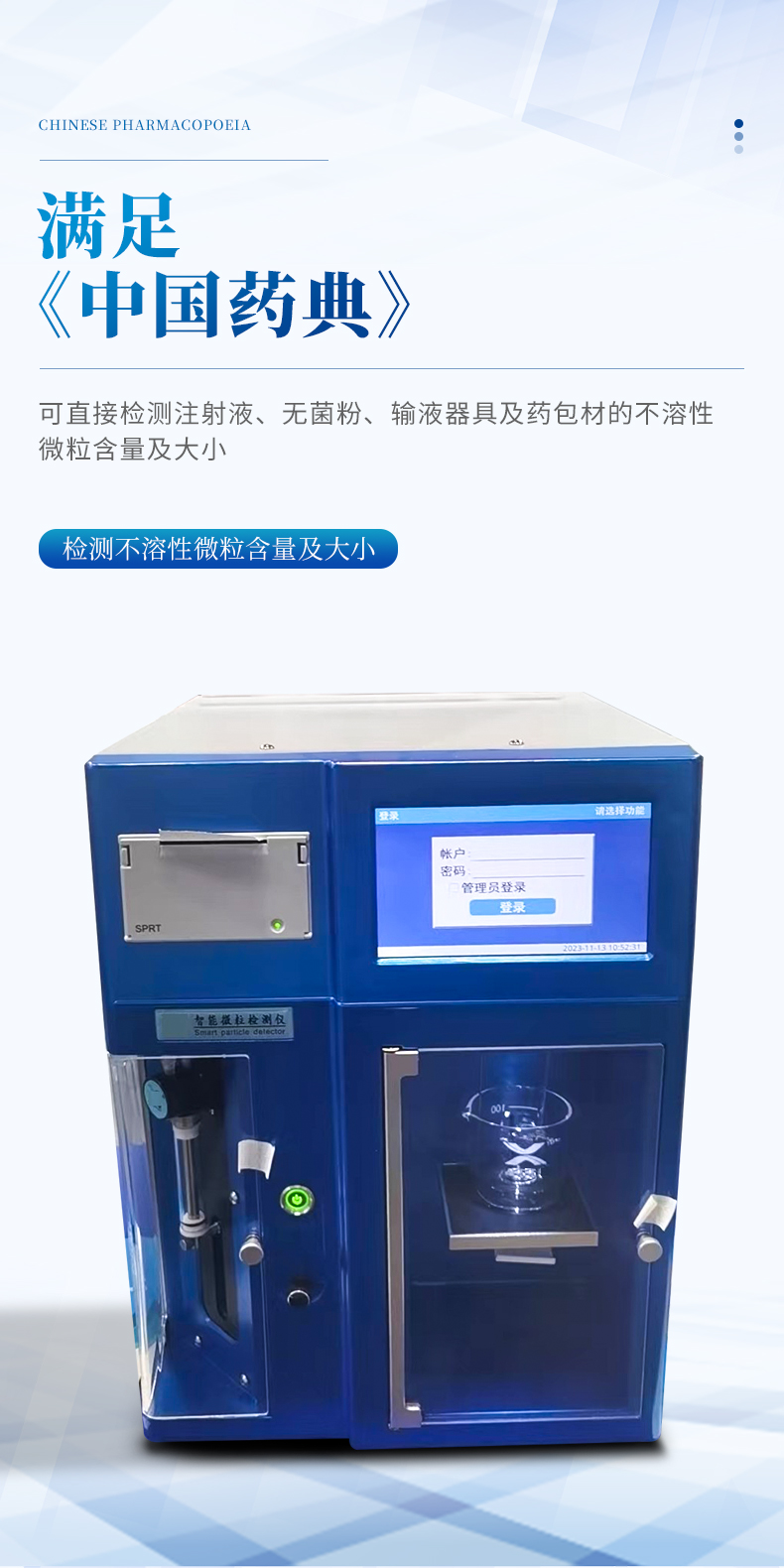 藥典標(biāo)準(zhǔn)及藥包材測試專用通道:≥5um、≥10um、≥25um、