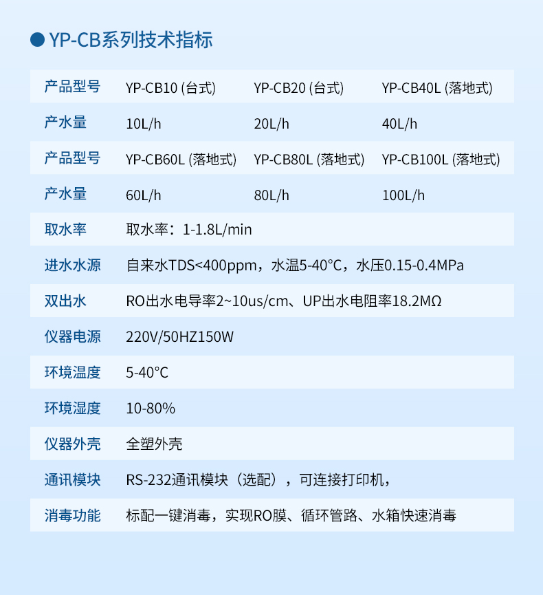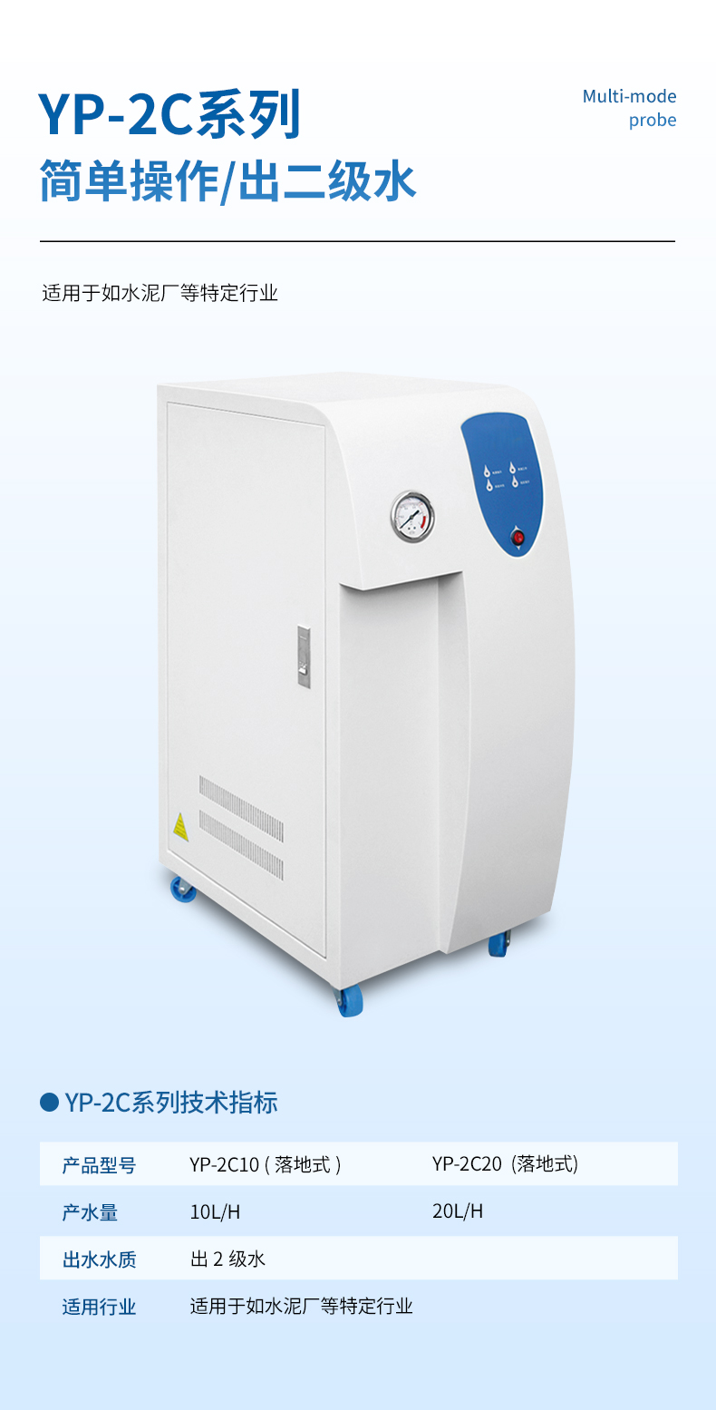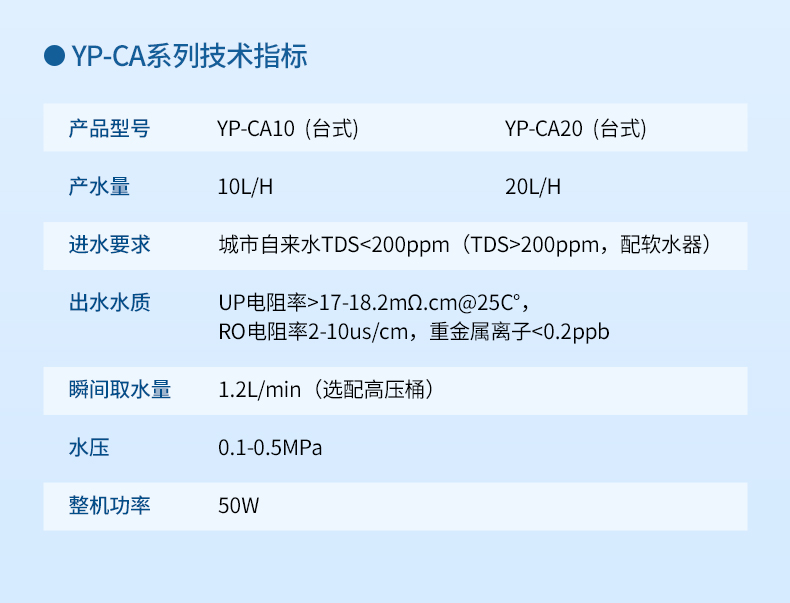 進(jìn)水水源:總?cè)芙夤腆w量TDS≤200ppm,水壓0.10~0.40MPa,水溫5~45℃
