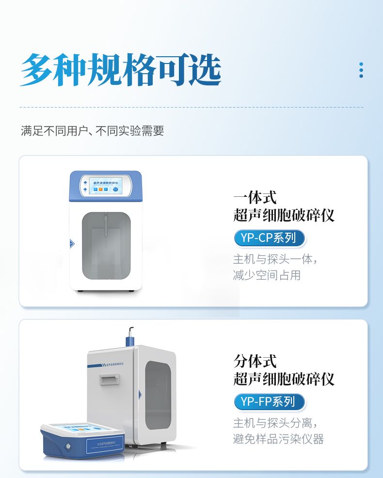 超聲波細(xì)胞破碎儀是一種利用強(qiáng)超聲在液體中產(chǎn)生空化效應(yīng),對物質(zhì)進(jìn)行超聲處理的多功能、多用途的儀器,能用于動(dòng)植物組織、細(xì)胞、細(xì)菌、芽胞菌種的破碎,同時(shí)可用來乳化、分離、分散、勻化、提取、脫氣、清洗及加速化學(xué)反應(yīng)等等。