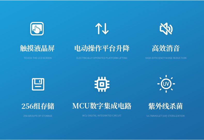 6.設(shè)備配置電動(dòng)操作平臺(tái)升降、 LED 照明系統(tǒng)、紫外殺菌功能;