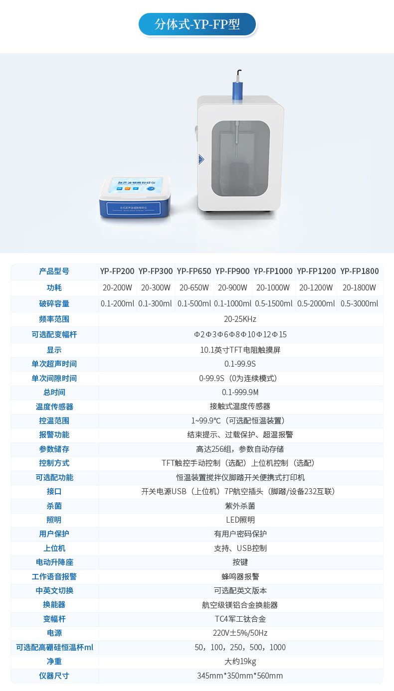 4.破碎容量:0.1--200ml(需選配相應(yīng)的變幅桿)
