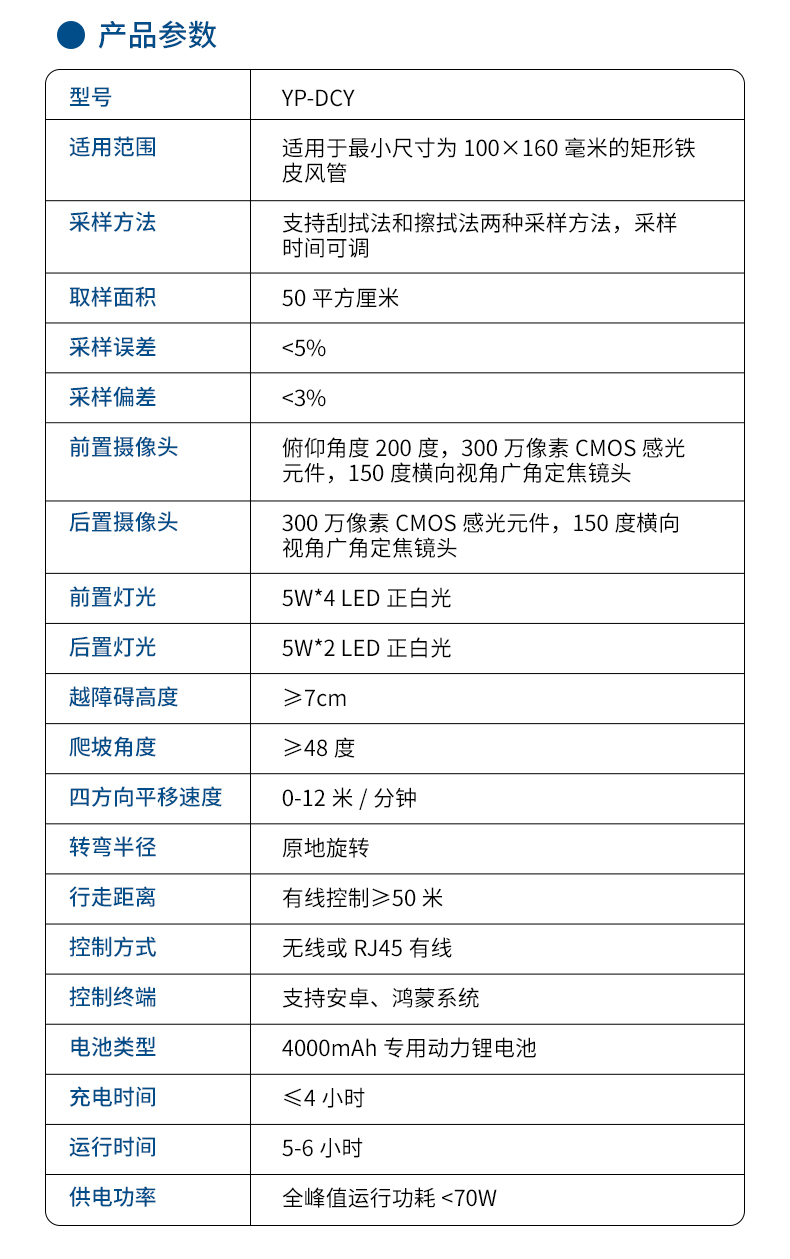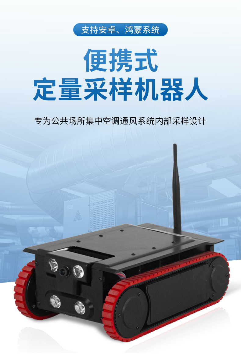 定量采樣機(jī)器人是一款專為公共場所集中空調(diào)通風(fēng)系統(tǒng)內(nèi)部采樣設(shè)計(jì)的高精度、便攜式智能設(shè)備。該產(chǎn)品嚴(yán)格按照《WS 10013-2023公共場所集中空調(diào)通風(fēng)系統(tǒng)衛(wèi)生規(guī)范》、《WS/T 10004-2023公共場所集中空調(diào)通風(fēng)系統(tǒng)衛(wèi)生學(xué)評(píng)價(jià)規(guī)范》以及《GB 37488-2019公共場所衛(wèi)生指標(biāo)及限值要求》中的相關(guān)標(biāo)準(zhǔn)進(jìn)行設(shè)計(jì)與制造,確保了其在各種工業(yè)環(huán)境下的穩(wěn)定性和可靠性。它采用了先進(jìn)的航空鋁合金材料,結(jié)合了高效的移動(dòng)性能與卓越的采樣技術(shù),能夠滿足多種行業(yè)的通風(fēng)管道檢測和維護(hù)工作需求。