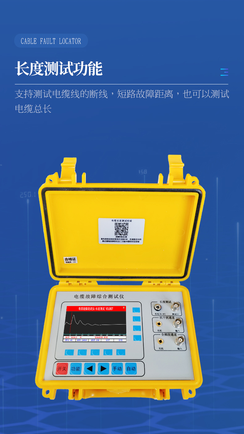 1、長度測試:斷電狀態(tài)下可以直接測試電纜的斷線、短路故障距離長度。