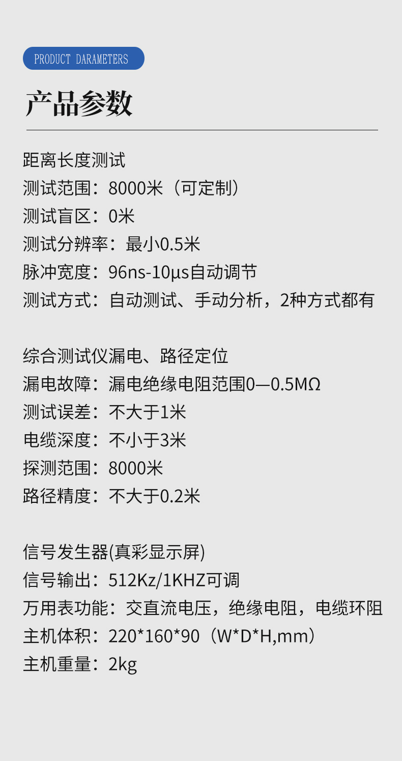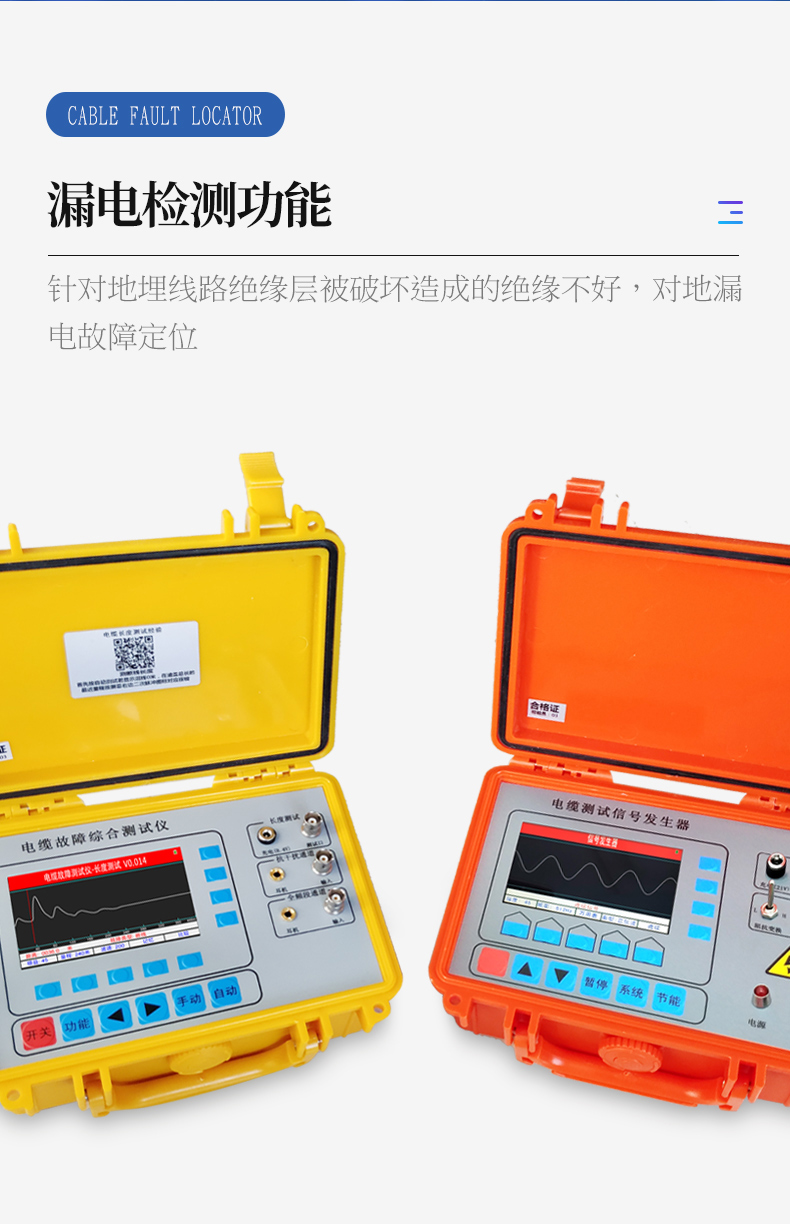 適用于路燈電纜維護、農(nóng)田水澆地電纜故障查修、小區(qū)物業(yè)及園林綠化帶地埋鎧甲鐵皮電力電纜、野外動力電纜、高速公路、廠礦企業(yè)、鐵塔通信基站直埋供電電纜故障排查等行業(yè)。