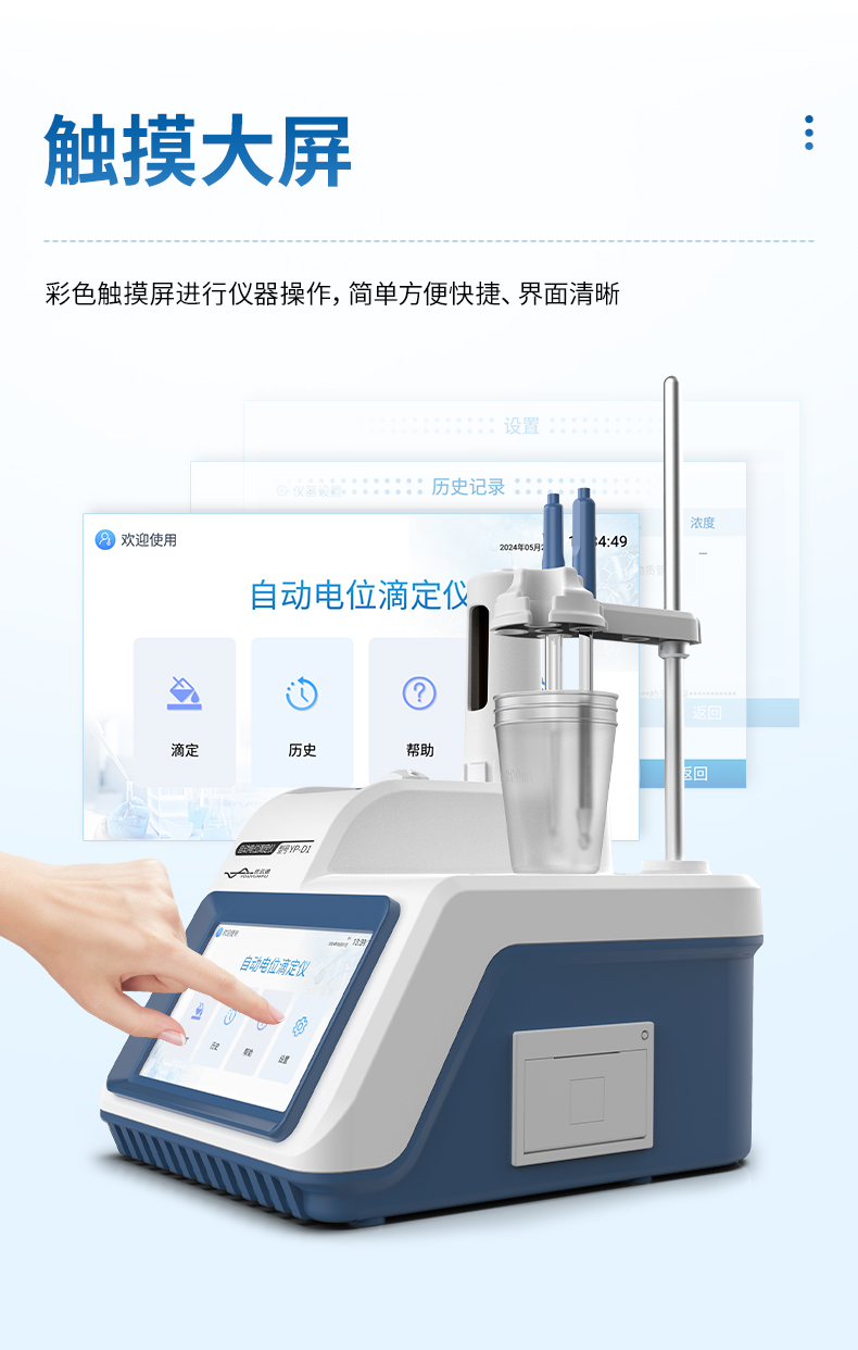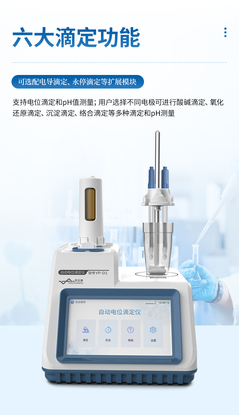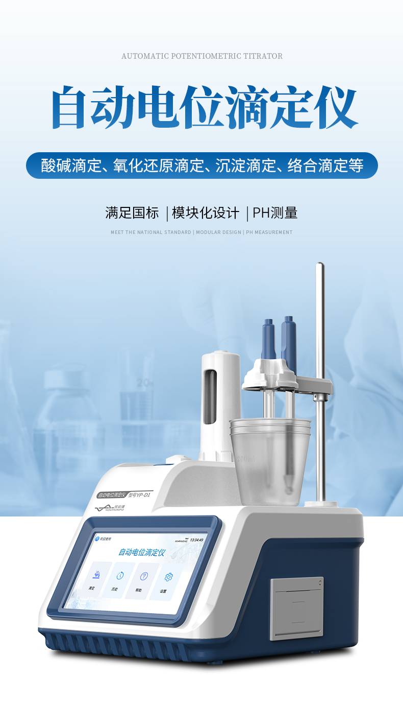 自動(dòng)電位滴定儀是一種用于化學(xué)分析的精密儀器,他通過自動(dòng)添加滴定劑來確定樣品中特定成分的濃度。該儀器基于電位滴定原理工作,即根據(jù)在滴定過程中電池電動(dòng)勢(shì)的變化來確定滴定終點(diǎn)的一款滴定設(shè)備。設(shè)備滿足國家檢定規(guī)程JJG 814-2015《自動(dòng)電位滴定儀》儀器級(jí)別中的0.05級(jí)別,即儀器最大示值誤差為±1.5%,儀器示值重復(fù)性≤0.2%