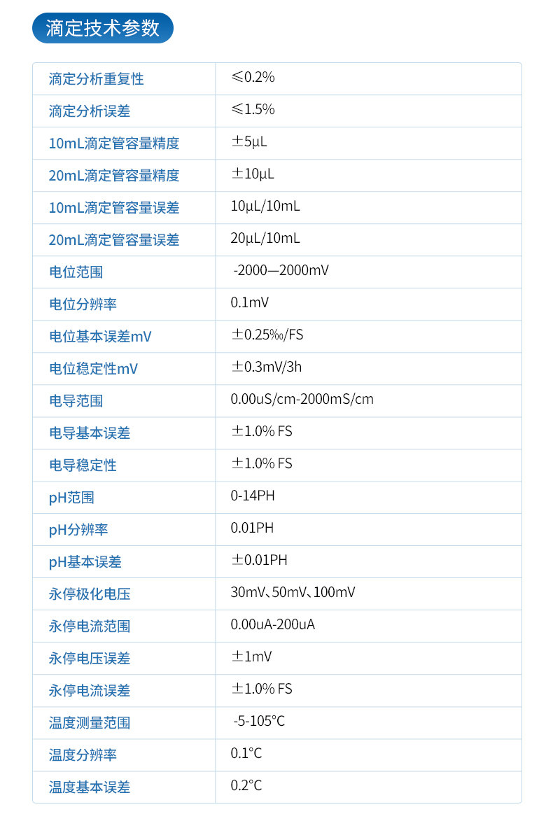 滴定分析重復(fù)性:≤0.2%