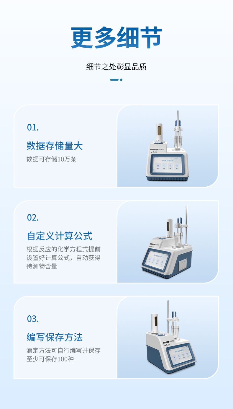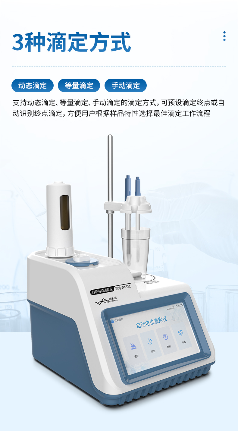 4、支持動(dòng)態(tài)滴定、等量滴定、手動(dòng)滴定的滴定方式,可預(yù)設(shè)滴定終點(diǎn)或自動(dòng)識(shí)別終點(diǎn)滴定,方便用戶根據(jù)樣品特性選擇最佳滴定工作流程;