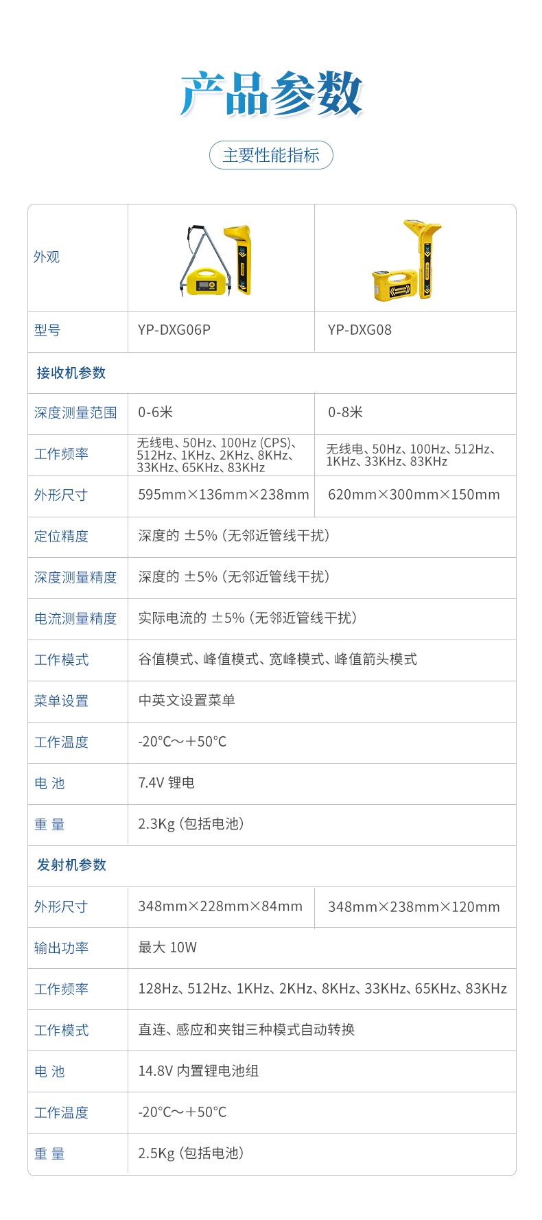 深度測量精度:深度的±5%(無鄰近管線干擾)