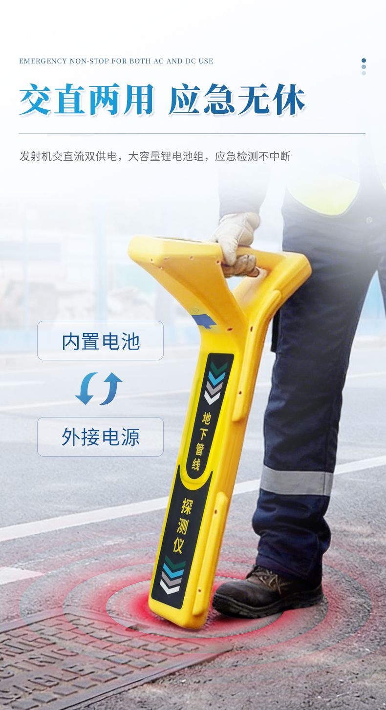 地下管線探測儀由國內(nèi)專業(yè)研發(fā)團(tuán)隊精心打造,融合超窄帶濾波器等先進(jìn)技術(shù),具有超強(qiáng)抗干擾能力、精準(zhǔn)定位和測深等優(yōu)異探測性能,適用于地下各種金屬管線的探測和巡線、管線管理與維護(hù)、市政規(guī)劃建設(shè)、供電等部門的管線檢測,是管道維護(hù)單位的必備儀器之一。