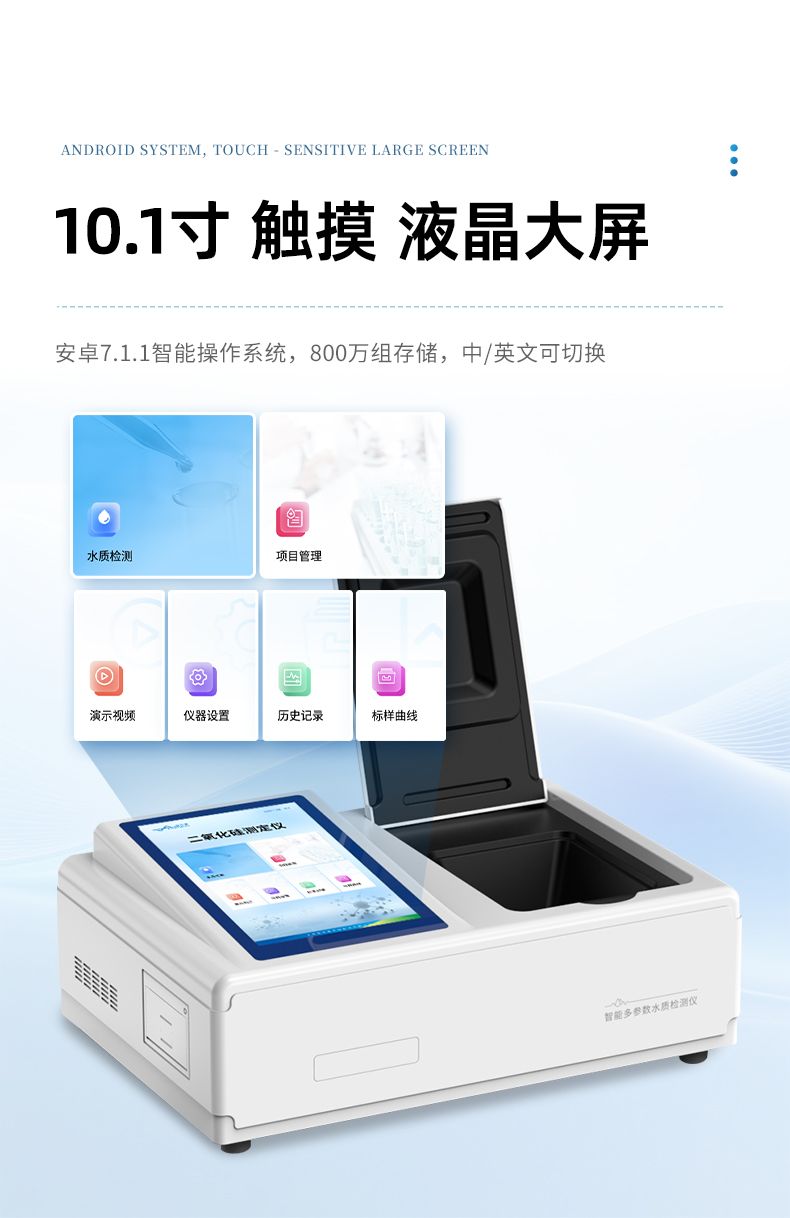 本儀器主要檢測(cè)水質(zhì)二氧化硅濃度指標(biāo),兼具智能數(shù)據(jù)分析功能,圖表、列表顯示數(shù)據(jù),分析一目了然;高清晰度彩色液晶觸摸顯示屏,Android智能操作系統(tǒng),中文顯示界面,中英文鍵盤,人性化操作,使用更簡(jiǎn)單。