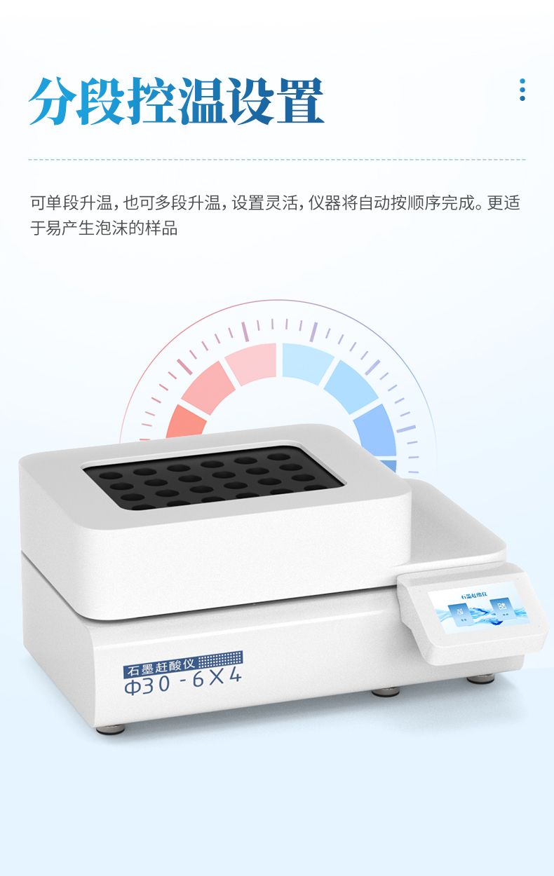 分段控溫設(shè)置,即可單段升溫,也可多段升溫,設(shè)置靈活,儀器將自動按順序完成。更適于易產(chǎn)生泡沫的樣品。