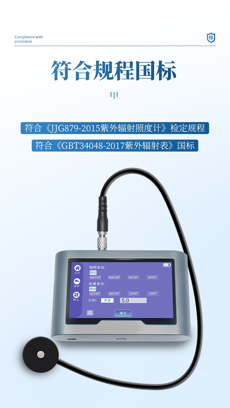 8.符合規(guī)程:《JJG879-2015紫外輻射照度計(jì)》檢定規(guī)程、《GBT34048-2017紫外輻射表》國標(biāo);