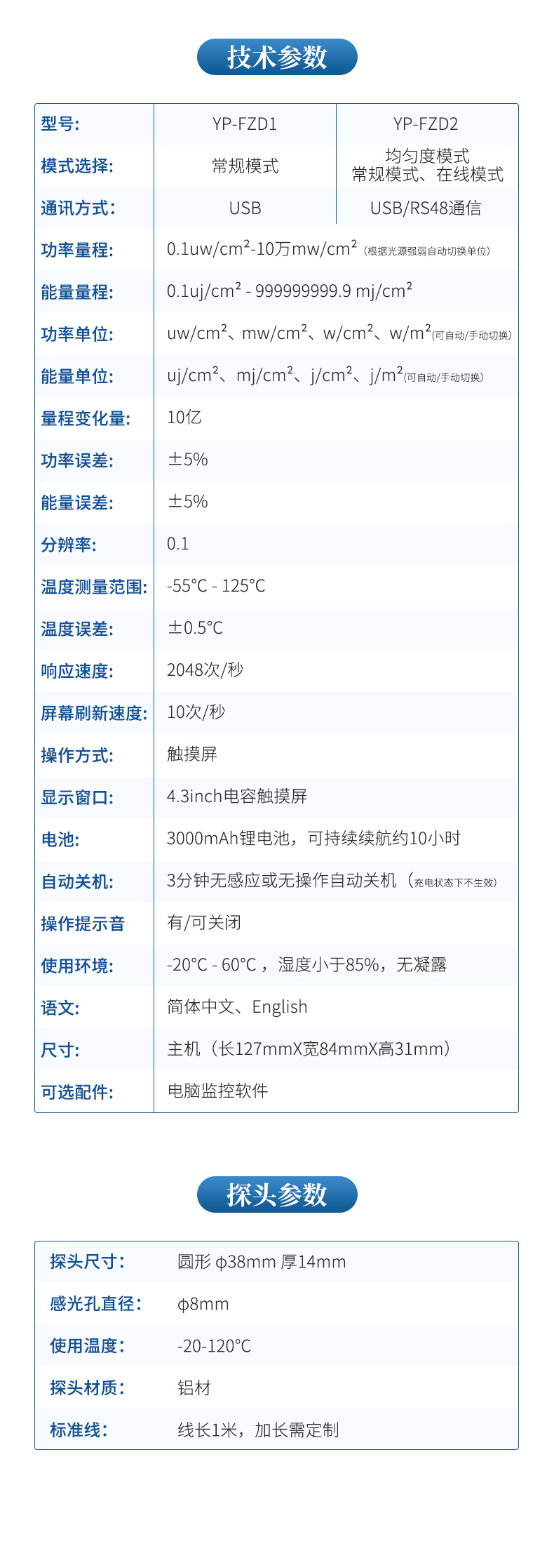 | 探頭E420(藍(lán)光) | 400-480nm | 450nm |