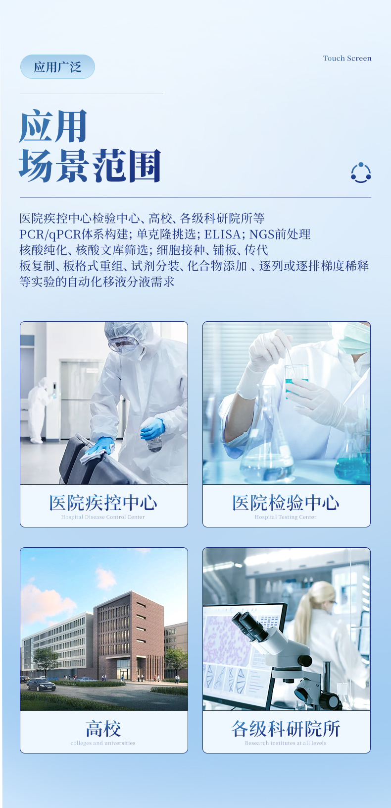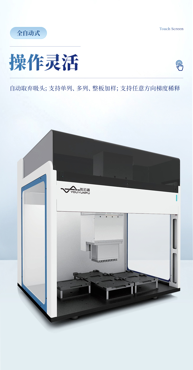 操作靈活:自動(dòng)取棄吸頭;支持單列、多列、整板加樣;支持任意方向梯度稀釋。