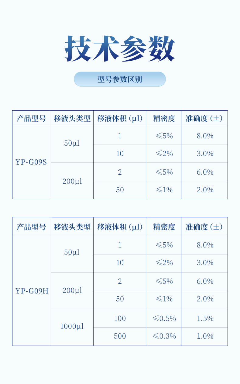 移液頭類型 | 移液體積(μl) | 精密度 | 準(zhǔn)確度(±) | 備注 |