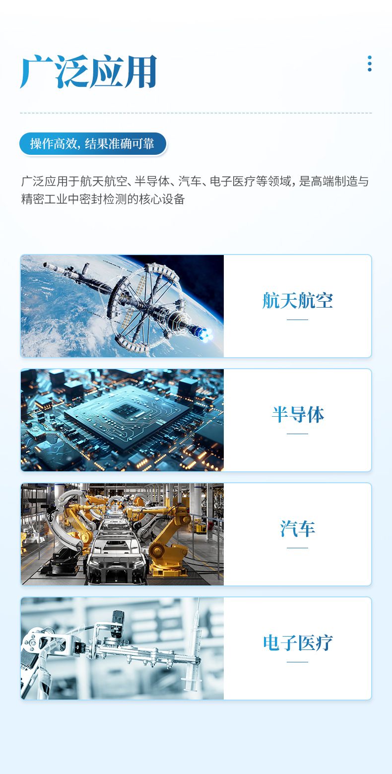 氦質(zhì)譜檢漏儀是采用質(zhì)譜學(xué)原理、以氦氣為示漏氣體的高精度無(wú)損檢漏設(shè)備,憑借氦氣大氣含量低、質(zhì)荷比特征鮮明的優(yōu)勢(shì),實(shí)現(xiàn)超高靈敏度檢漏,可精準(zhǔn)定位并定量漏點(diǎn)。設(shè)備支持真空噴氦、吸槍掃描、背壓累積等多種檢漏模式,適配真空 / 帶壓容器、密封組件、精密器件等不同檢測(cè)需求,廣泛應(yīng)用于航天航空、半導(dǎo)體、汽車(chē)、電子醫(yī)療等領(lǐng)域,是高端制造與精密工業(yè)中密封檢測(cè)的核心設(shè)備。
