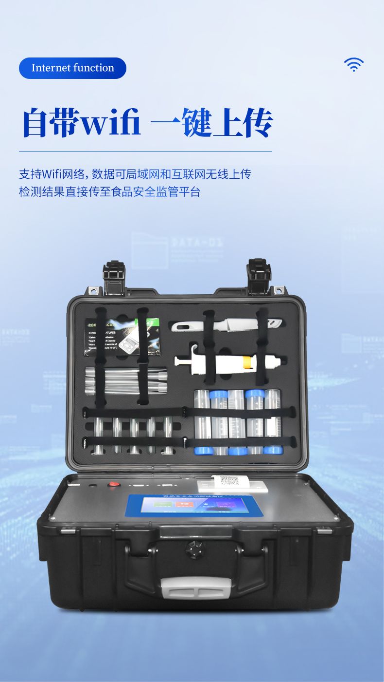 13、支持Wifi網(wǎng)絡(luò),數(shù)據(jù)可局域網(wǎng)和互聯(lián)網(wǎng)無(wú)線上傳,檢測(cè)結(jié)果直接傳至食品安全監(jiān)管平臺(tái)。進(jìn)行區(qū)域食品安全監(jiān)管及大數(shù)據(jù)分析處理,檢測(cè)區(qū)域食品安全長(zhǎng)短期動(dòng)態(tài),達(dá)到食品安全問(wèn)題預(yù)估、預(yù)警。