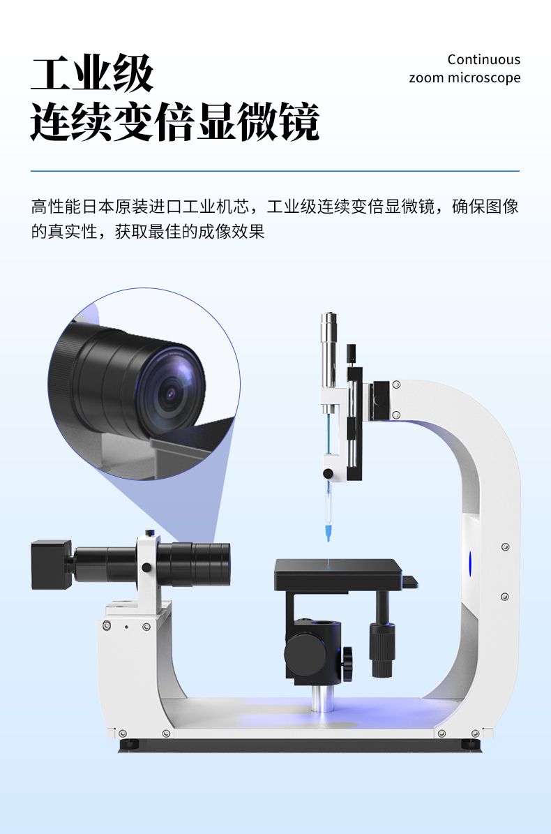 注射單元采用高精度注射泵進(jìn)液,由軟件定量定速控制,滴液穩(wěn)定,精度極高,注射單元自動(dòng)上升下降接液;
