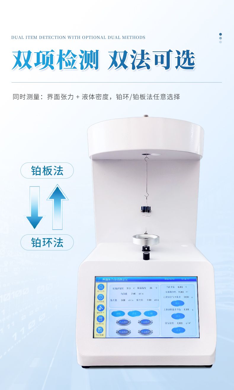3. 可同時測表界面張力和密度:集成兩項測量功能,無需額外設備。
