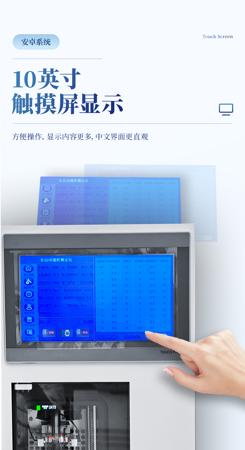 2.操作采用電容式觸摸屏,其優(yōu)點(diǎn)在于無(wú)機(jī)械損耗、防塵防水、抗射頻干擾、使用壽命長(zhǎng)。