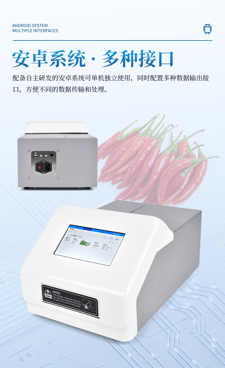 手持式辣度檢測儀采用電化學(xué)測量方法,可快速、便捷地檢測各種辣椒及辣椒制品中的天然辣椒素的等級,適用于干辣椒、鮮辣椒、辣椒粉等天然辣椒及其制品的快速檢測。