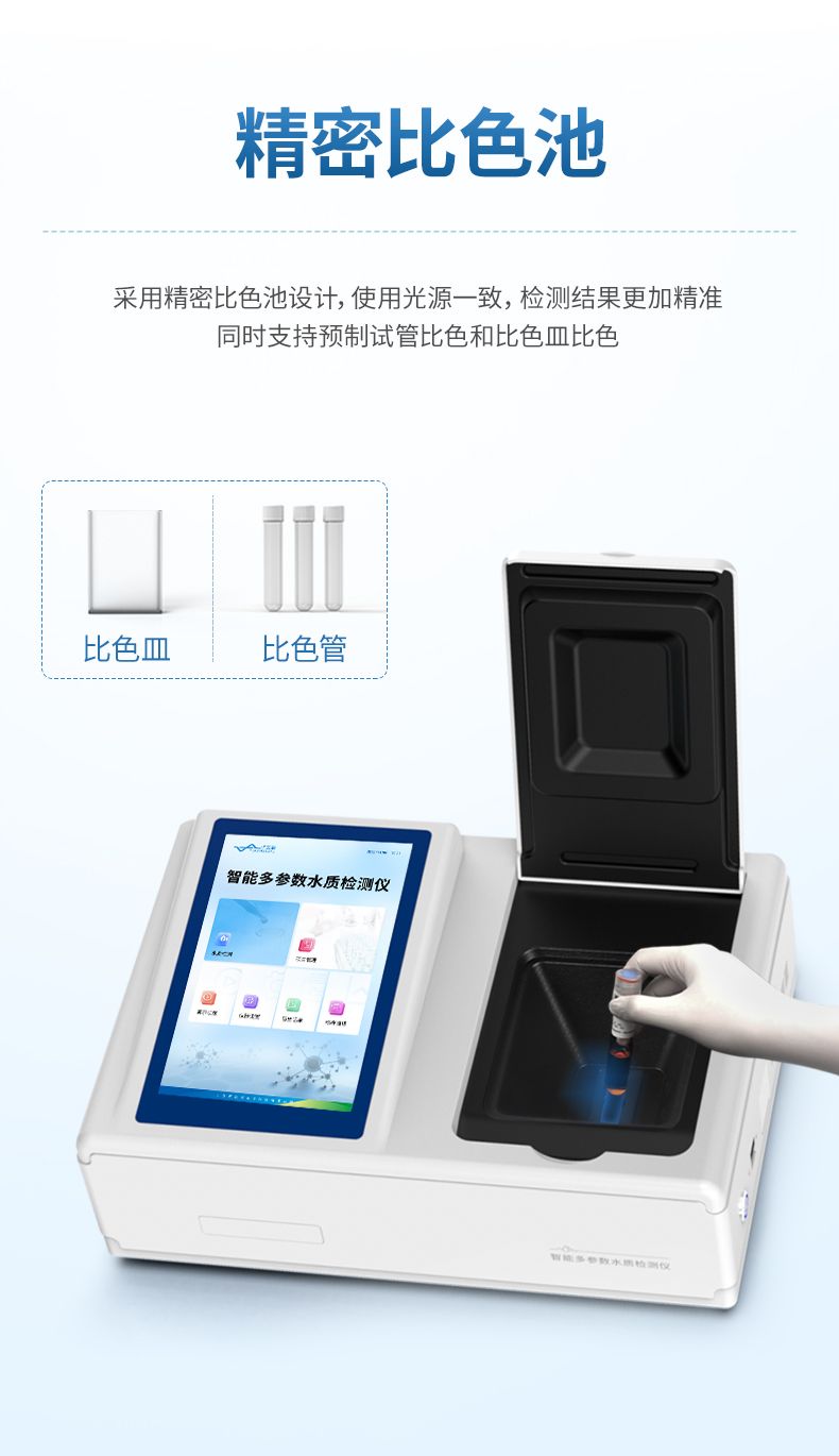 3、采用精密比色池設(shè)計,使用光源一致,可以解決由于光源誤差帶來的檢測結(jié)果誤差問題,檢測結(jié)果更加精準。
