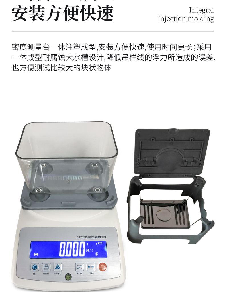 3.密度測(cè)量臺(tái)一體注塑成型,安裝方便快速,使用時(shí)間更長