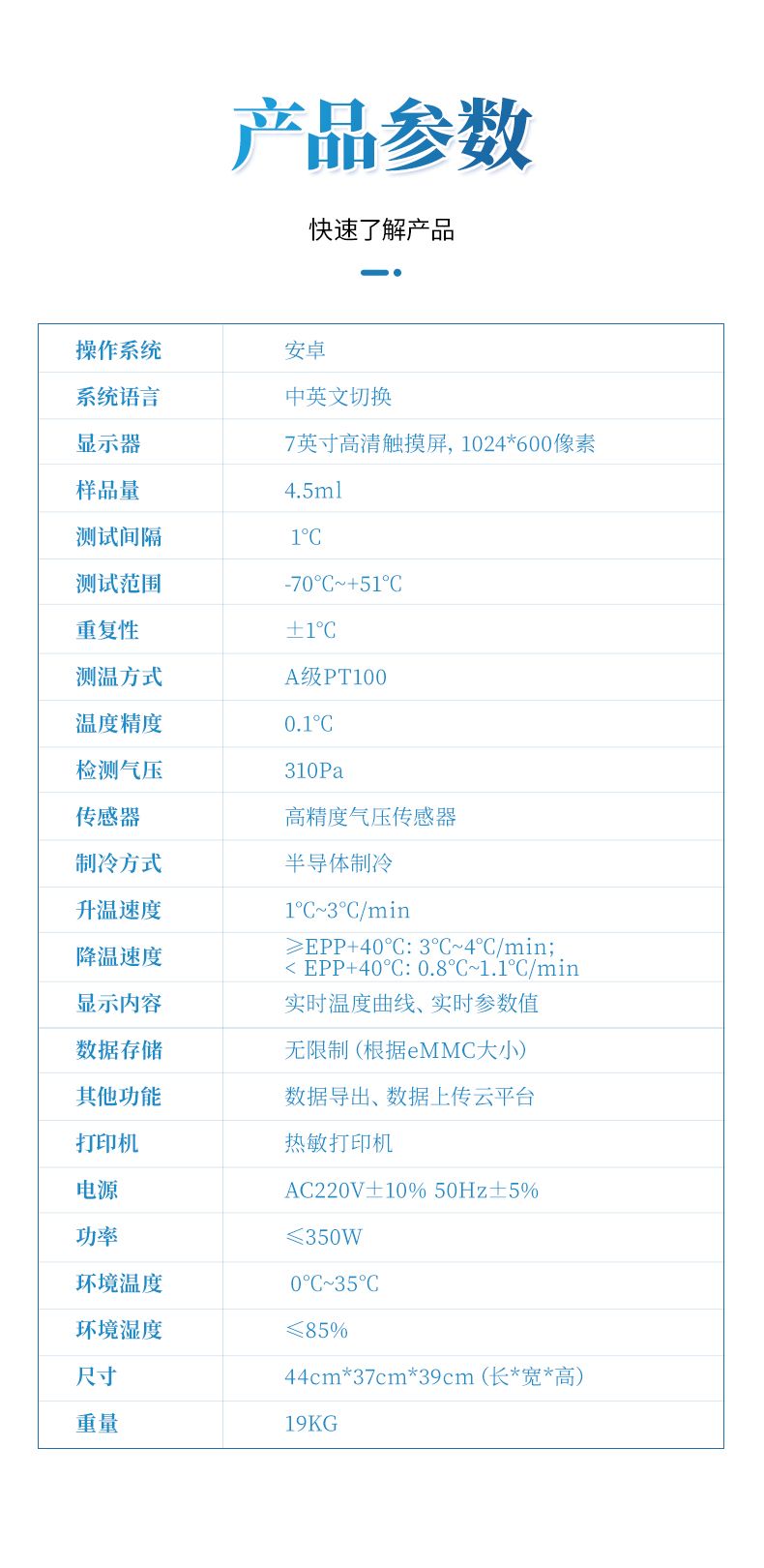 【產(chǎn)品簡介】測試間隔:1℃;測試范圍:-70℃~+51℃;重復性:±1℃