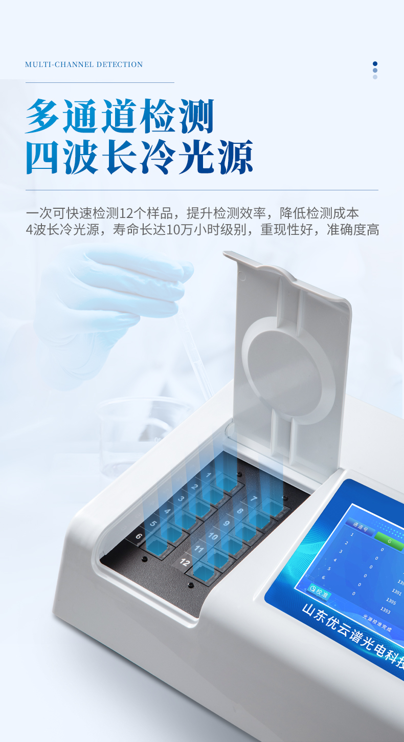 12、比色池部分采用標(biāo)準(zhǔn)1cm比色皿,無機(jī)械位移及磨損,光路測試定位精確,有效屏蔽外光干擾,保證檢測結(jié)果優(yōu)于國標(biāo)要求。