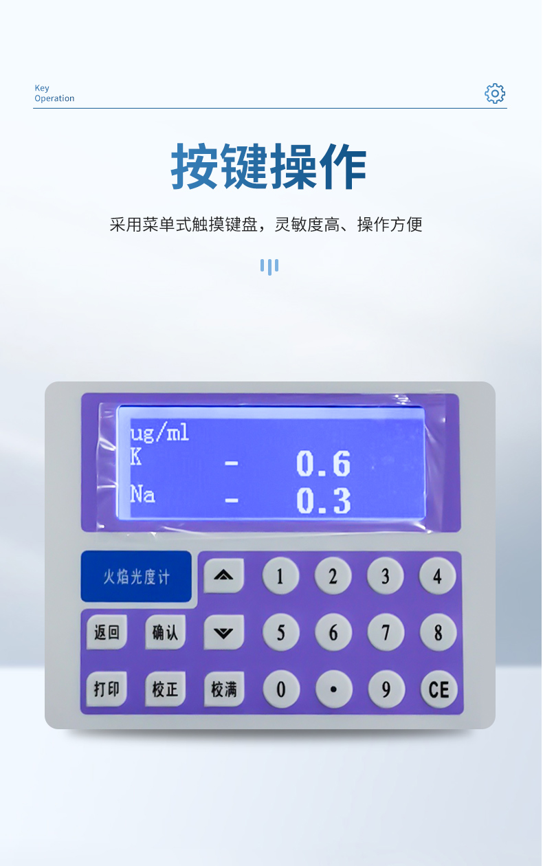 1) 帶有K 、Na 、Li 、Ca 、Ba五種元素的濃度直讀功能,能同時(shí)最多顯示3種任意組合的元素;