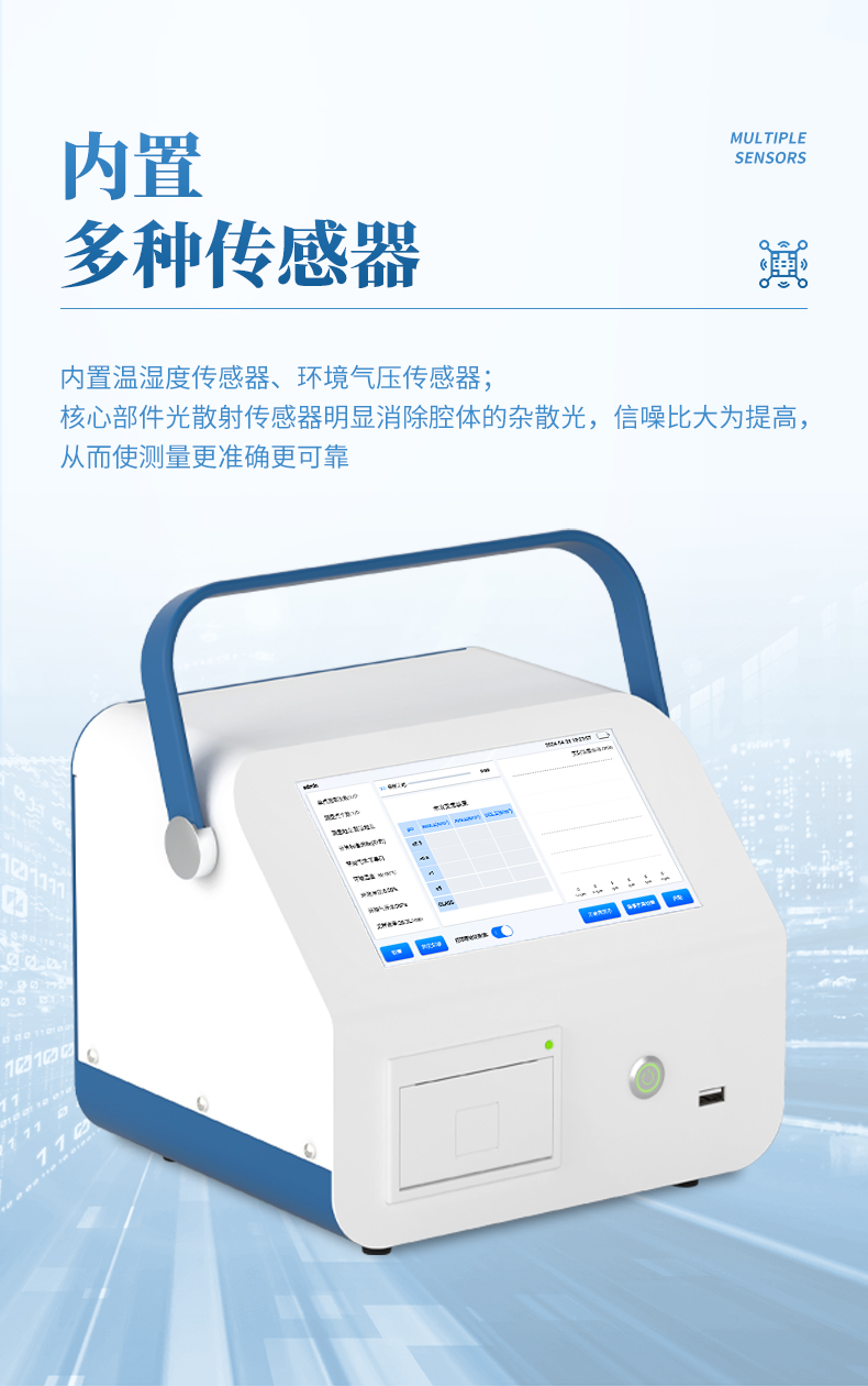 3、核心部件光散射傳感器明顯消除腔體的雜散光,信噪比大為提高。從而使測量更準(zhǔn)確更可靠。