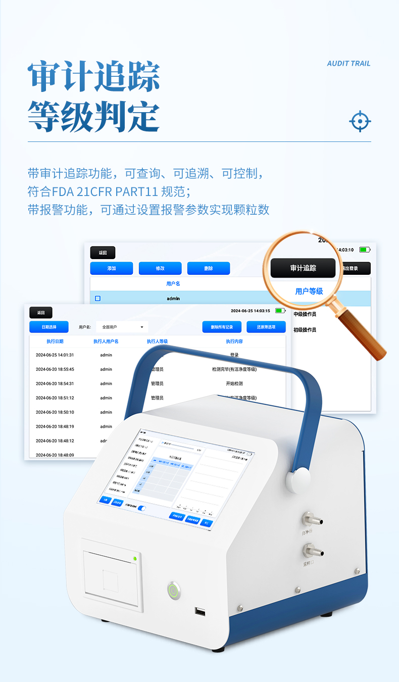 6、帶審計追蹤功能,可查詢、可追溯、可控制,符合FDA 21CFR PART11規(guī)范