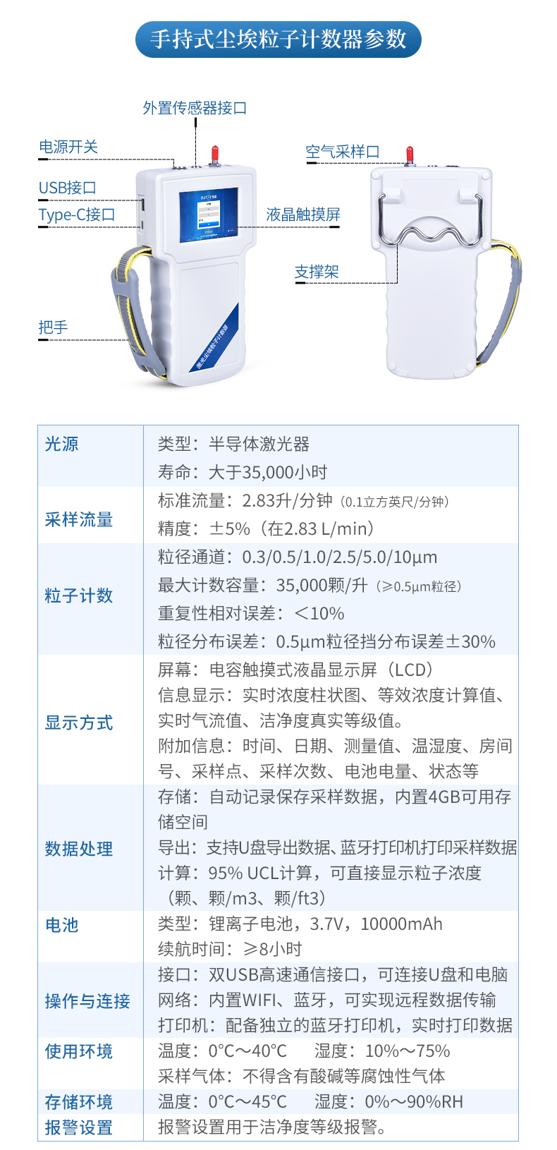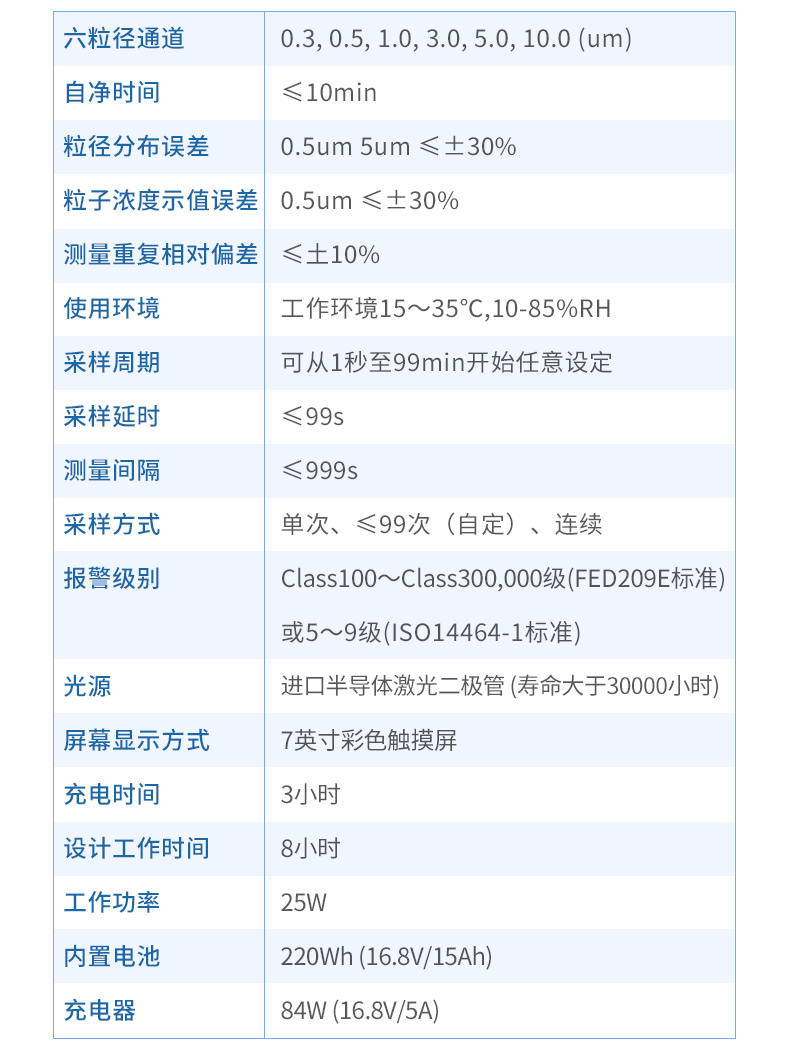 六粒徑通道:0.3,0.5,1.0,3.0,5.0,10.0(μm)