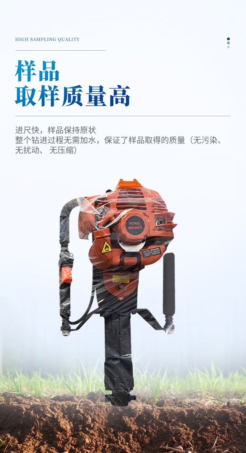 8、采樣深度,可以連接鉆桿一次性采樣,中途不提鉆