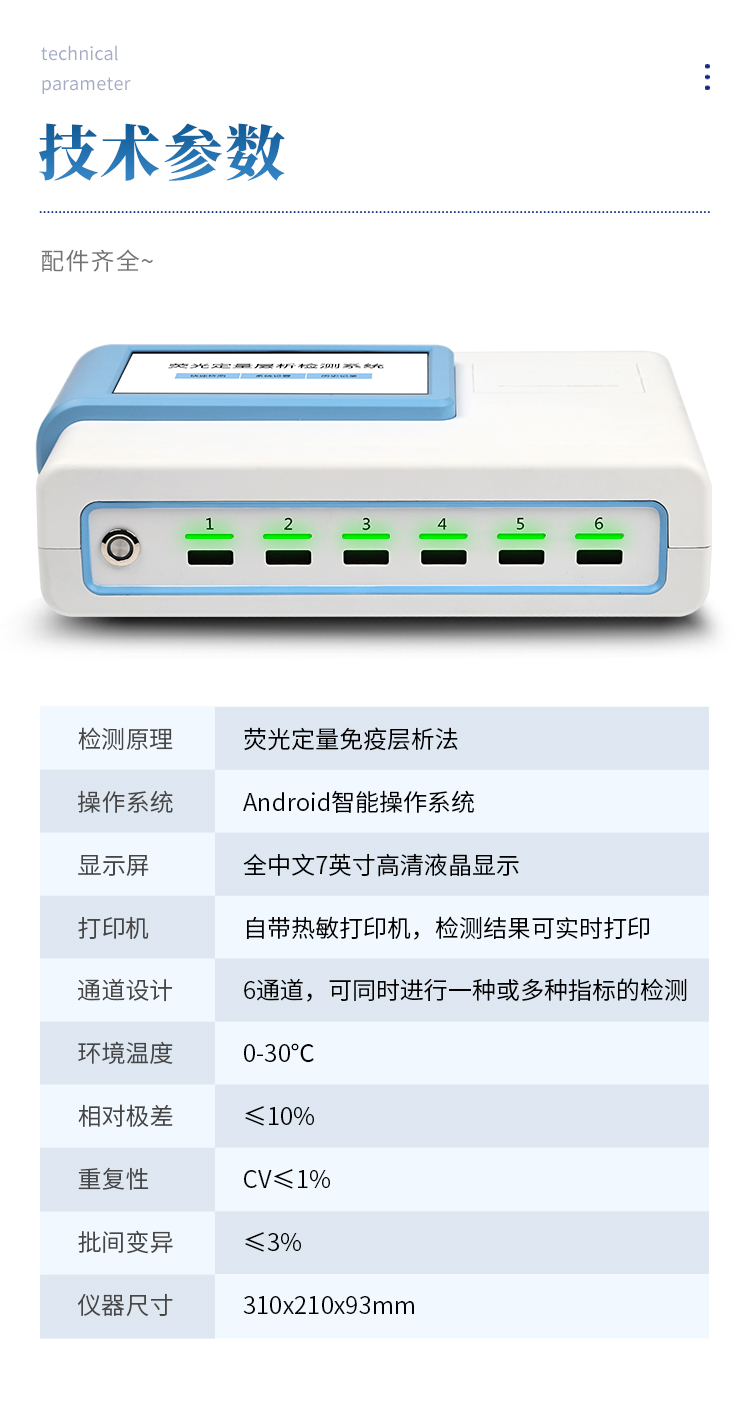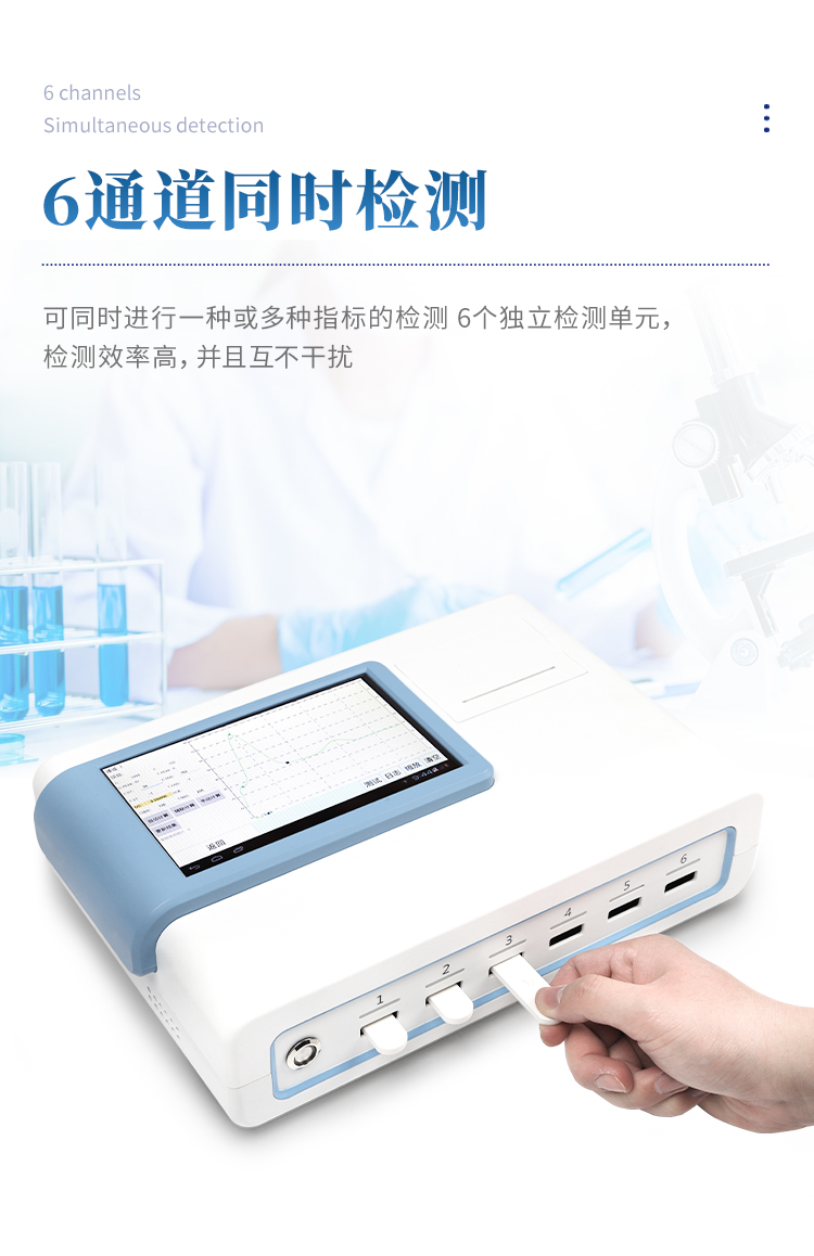 5、6通道設(shè)計,可同時進行一種或多種指標的檢測,6個獨立檢測單元,檢測效率高,并且互不干擾;