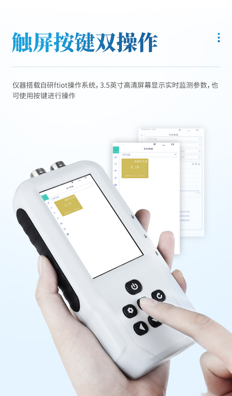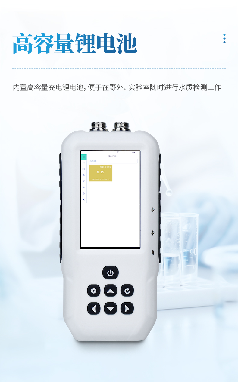 SS8型號便攜式多參數(shù)水質(zhì)測定儀是一款電極法水質(zhì)分析儀器,采用全數(shù)字電極檢測,可檢測溶解氧參數(shù)。儀器搭載自研ftiot操作系統(tǒng),操作簡單、性能穩(wěn)定、測量準確、檢測范圍廣,內(nèi)置高容量充電鋰電池,便于用戶在野外、實驗室隨時進行水質(zhì)檢測工作。
