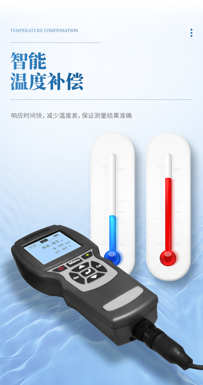 2. 內(nèi)置氣壓傳感器,可對溶解氧自動補(bǔ)償