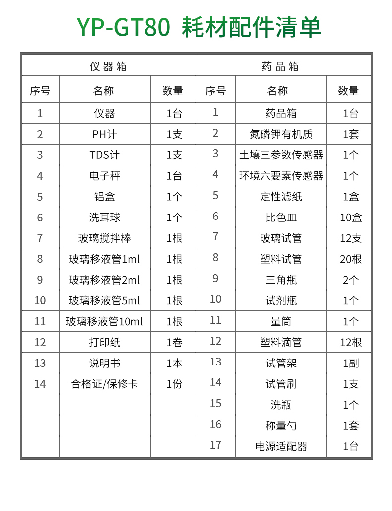 八、全項(xiàng)目土壤肥料養(yǎng)分檢測(cè)儀配置清單:
