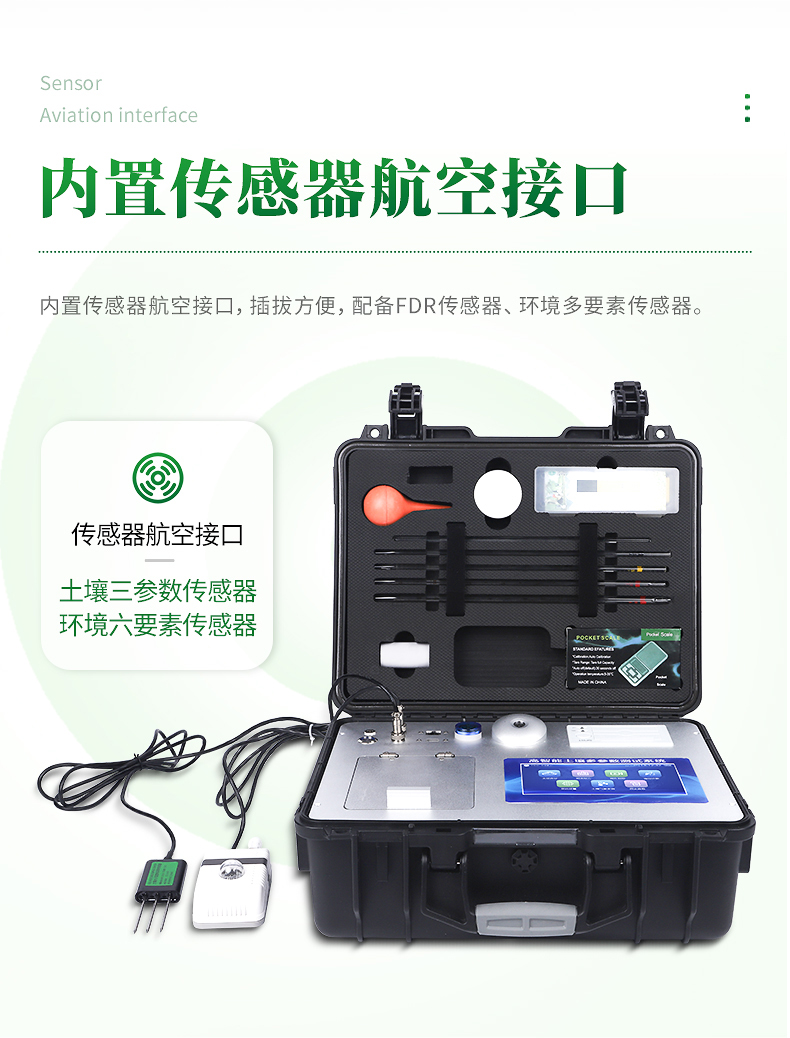 【產(chǎn)品簡(jiǎn)介】可檢測(cè)各種土壤、肥料、作物、食品、水質(zhì)、環(huán)境等測(cè)試項(xiàng)目,—機(jī)多用,功能齊全,配備土壤三參數(shù)傳感器、環(huán)境六要素傳感器