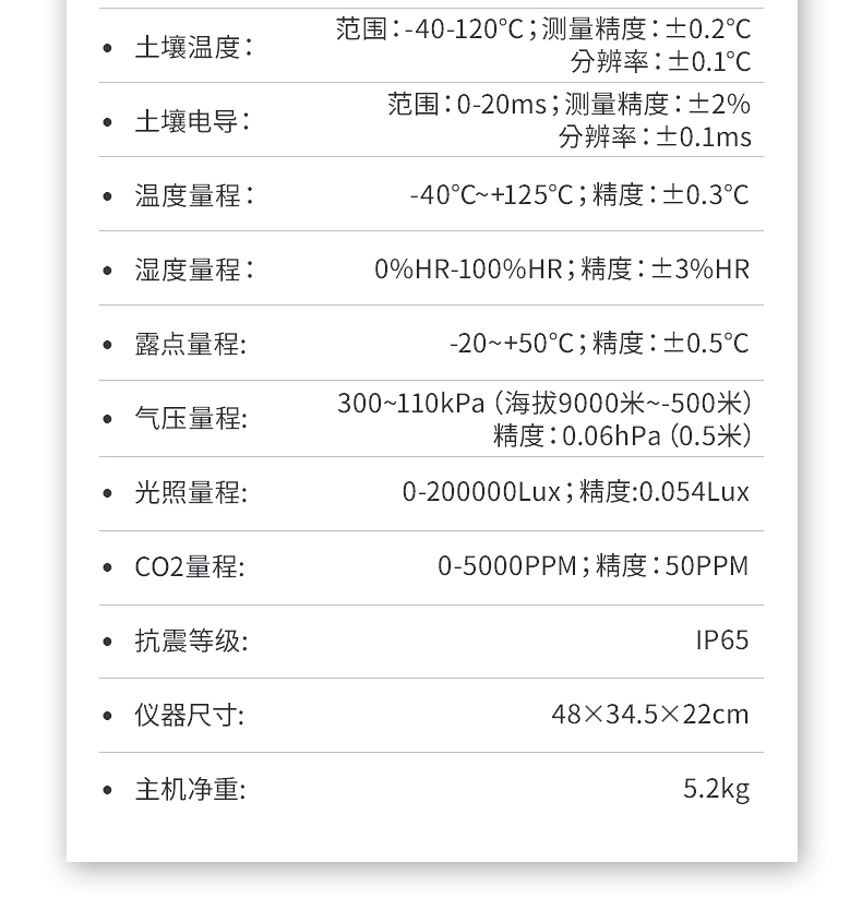 11.土壤水分技術(shù)參數(shù)水分單位:﹪(g/100g);含水率測(cè)試范圍:0-100﹪;誤差小于0.5%