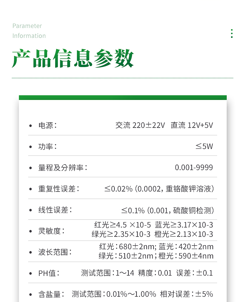 6.線性誤差: ≤0.1%(0.001,硫酸銅檢測(cè))
