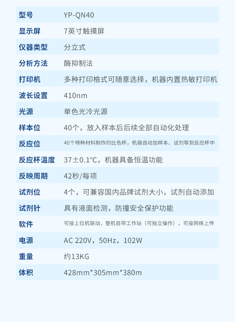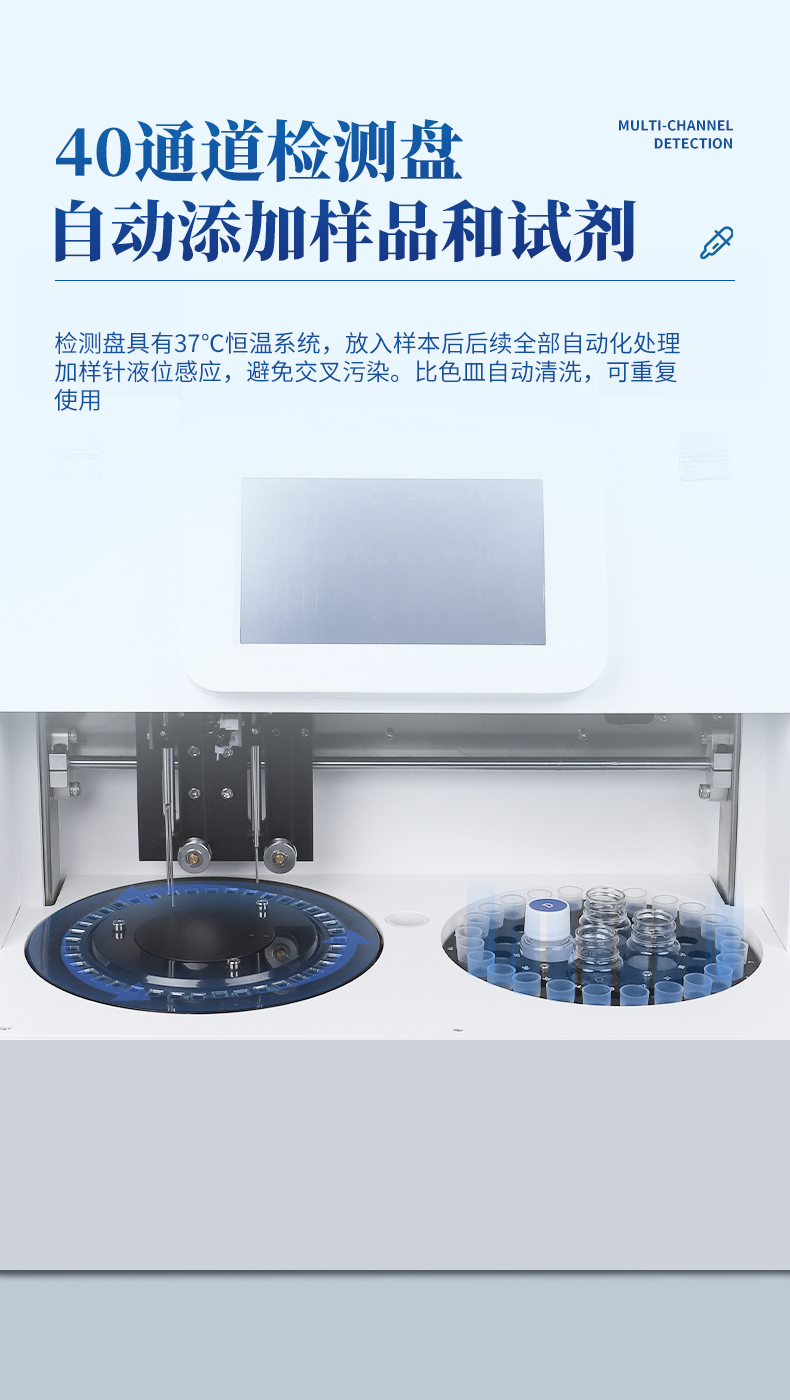 檢測盤:40通道檢測盤,比色皿容量500uL,檢測盤具有37℃恒溫系統(tǒng)