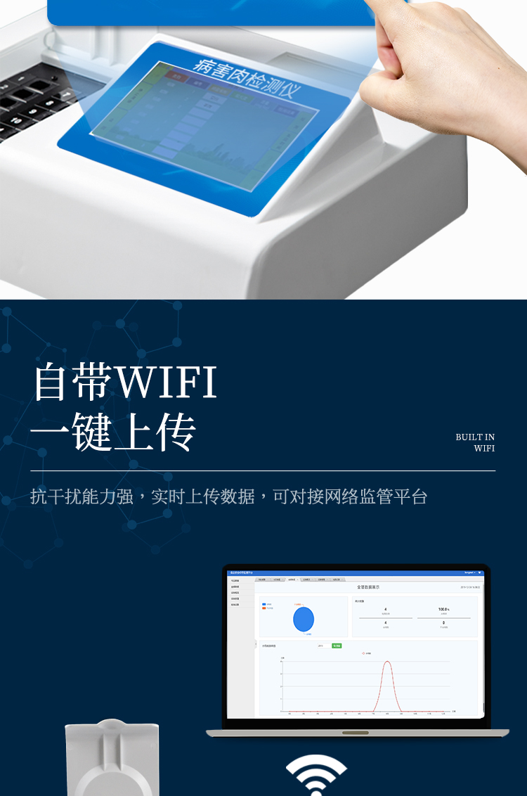 8、儀器帶有監(jiān)管平臺(tái)。數(shù)據(jù)可局域網(wǎng)和互聯(lián)網(wǎng)數(shù)據(jù)上傳,檢測結(jié)果直接傳至食品安全監(jiān)管平臺(tái)。進(jìn)行區(qū)域食品安全監(jiān)管及大數(shù)據(jù)分析處理,檢測區(qū)域食品安全長短期動(dòng)態(tài),達(dá)到食品安全問題預(yù)估、預(yù)警