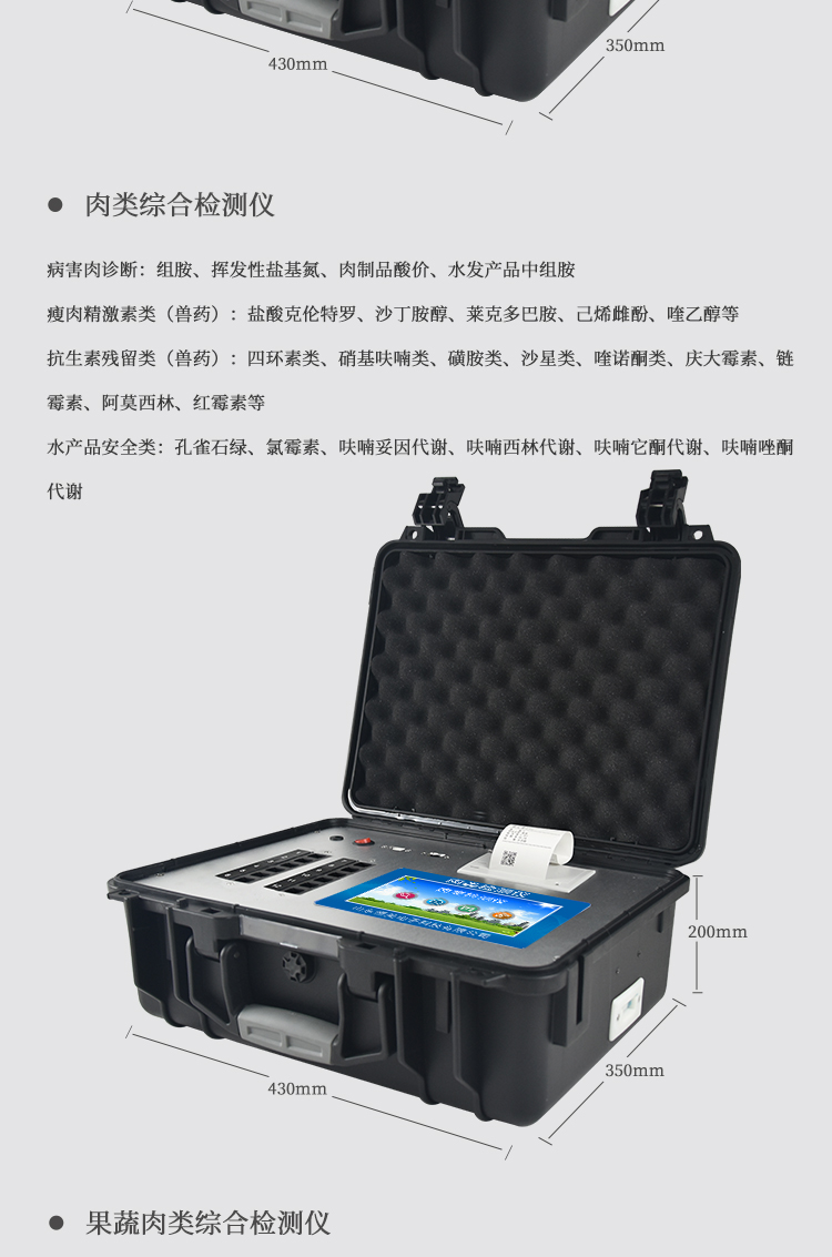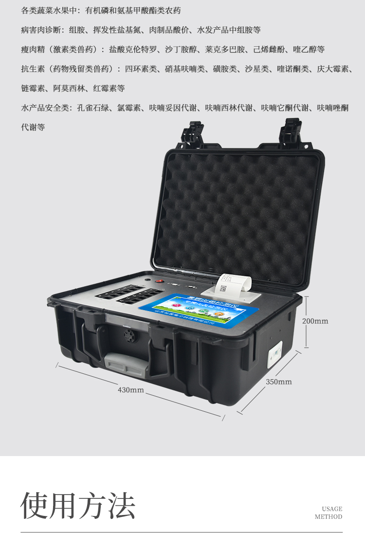 該多功能食品安全檢測(cè)儀為集成一體化食品安全快速檢測(cè)分析設(shè)備,廣泛應(yīng)用于市場(chǎng)監(jiān)管局、食品肉產(chǎn)品深加工企業(yè)、學(xué)校食堂、衛(wèi)生部門(mén)、畜牧部門(mén)、屠宰場(chǎng)、檢驗(yàn)檢疫部門(mén)等單位使用。
