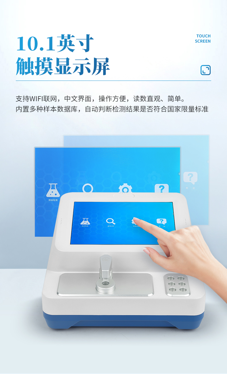 3、便攜式設(shè)計,攜帶方便,無需外接電源,可用于食品現(xiàn)場快速檢測;