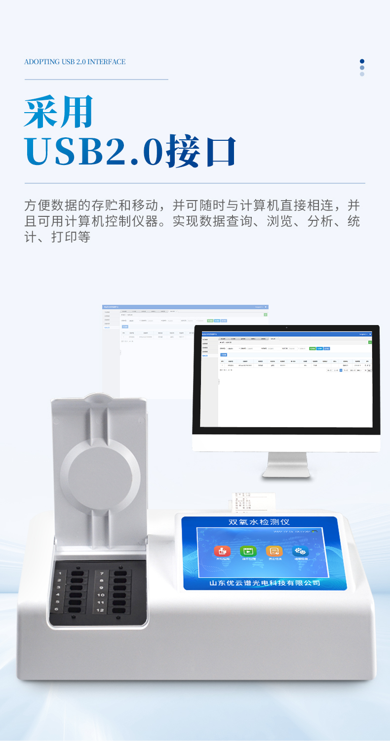 6、采用USB2.0接口設(shè)計(jì),方便數(shù)據(jù)的存貯和移動(dòng),并可隨時(shí)與計(jì)算機(jī)直接相連,并且可用計(jì)算機(jī)控制儀器。實(shí)現(xiàn)數(shù)據(jù)查詢(xún)、瀏覽、分析、統(tǒng)計(jì)、打印等。