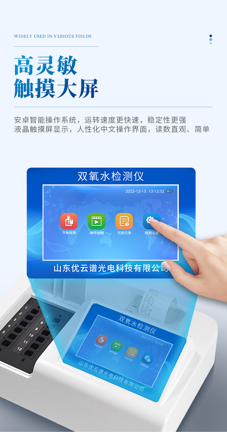 1、檢測(cè)項(xiàng)目:可快速檢測(cè)各類(lèi)食品中的雙氧水的含量,儀器預(yù)留其他項(xiàng)目檢測(cè)程序和端口,根據(jù)日后需求可方便的自主增加檢測(cè)項(xiàng)目。日后可升級(jí)為檢測(cè),水產(chǎn)品,肉制品,面制品的綜合類(lèi)型儀器。