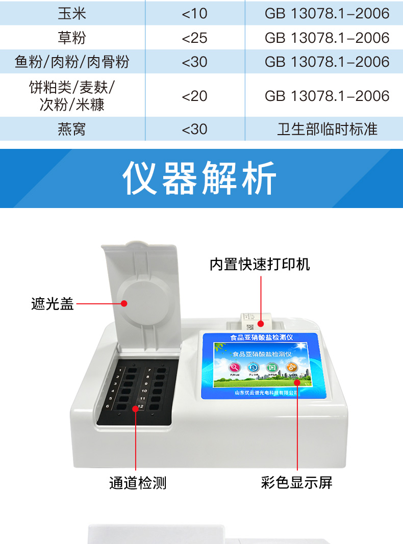 7、內(nèi)置新國家限量標(biāo)準(zhǔn),與所測結(jié)果進(jìn)行現(xiàn)場比對,并持續(xù)更新標(biāo)準(zhǔn)。