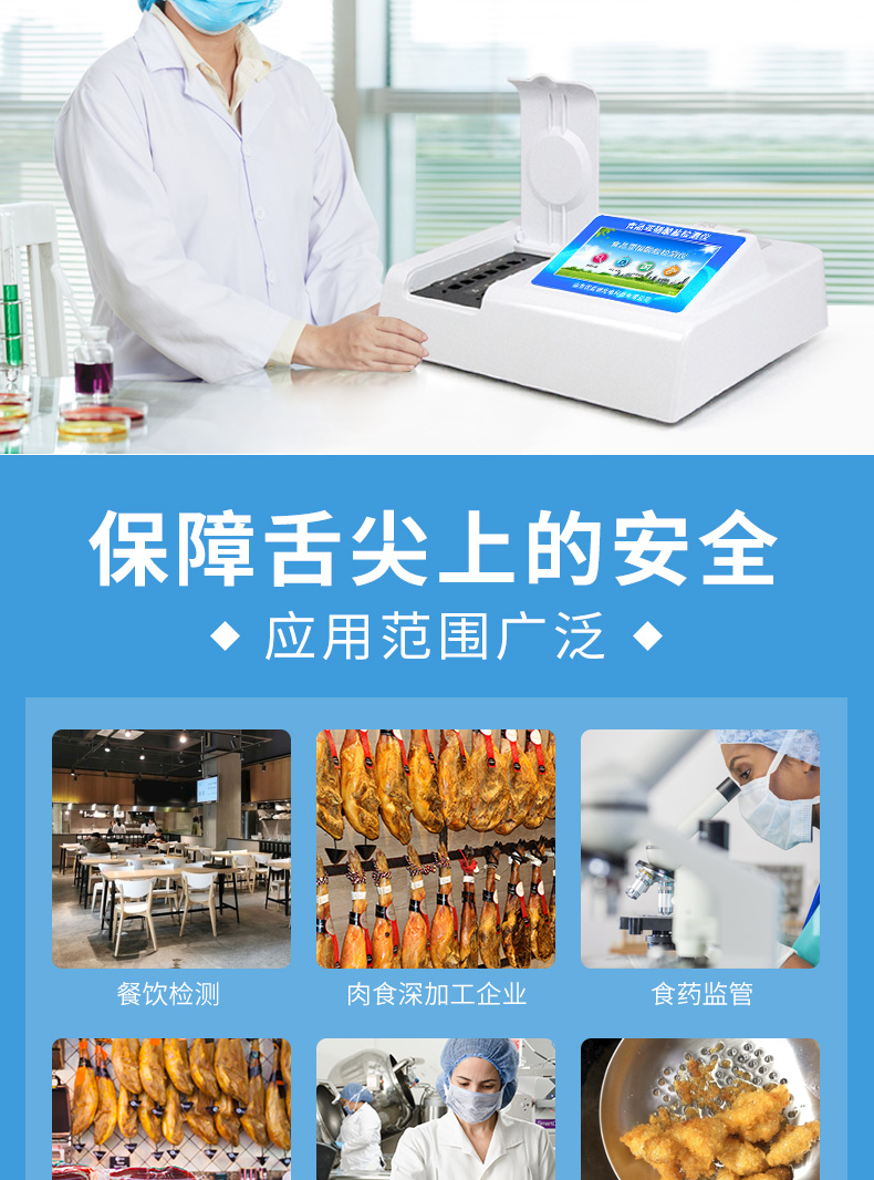 廣泛應(yīng)用于餐飲檢測、食藥監(jiān)局、衛(wèi)生部門、肉制品食品深加工企業(yè)、商場超市、質(zhì)量監(jiān)督檢驗(yàn)、工商管理、油炸食品生產(chǎn)基地、各大食品安全監(jiān)測系統(tǒng)等單位使用。