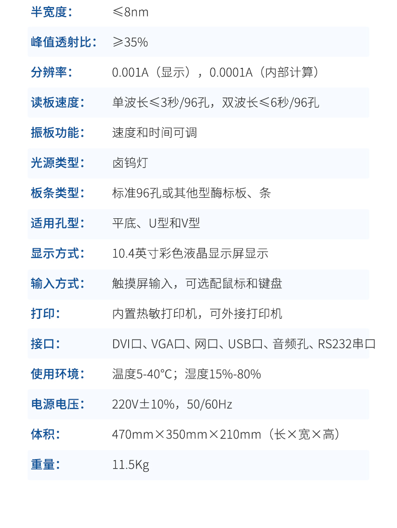 *讀板速度:?jiǎn)尾ㄩL(zhǎng)≤3秒/96孔,雙波長(zhǎng)≤6秒/96孔